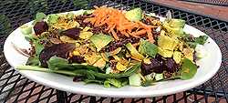 the wunderkind (the healthiest salad in town) – mixed greens, cukes, shredded carrots, avocado, red quinoa, roasted beets, curry toasted almonds, and a super-healthy dressing – $13.95